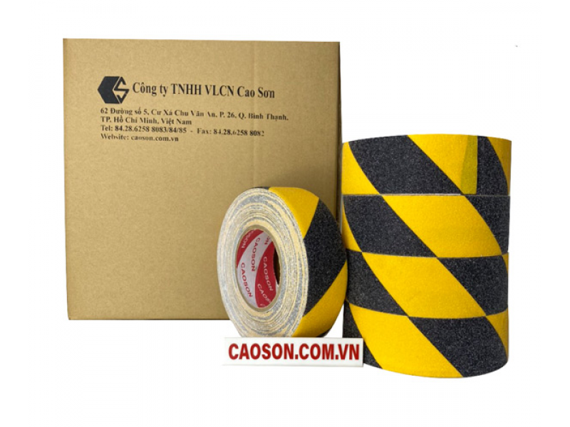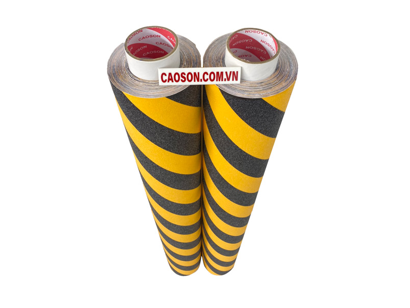 - Băng keo chống trượt sọc vàng đen phù hợp khu vực ra vào thường xuyên và đông đúc.