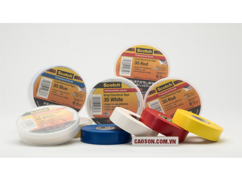 Băng keo điện 3M Scotch 35 là băng keo PVC có nhiều màu khác nhau , với độ dày 0.18 mm.