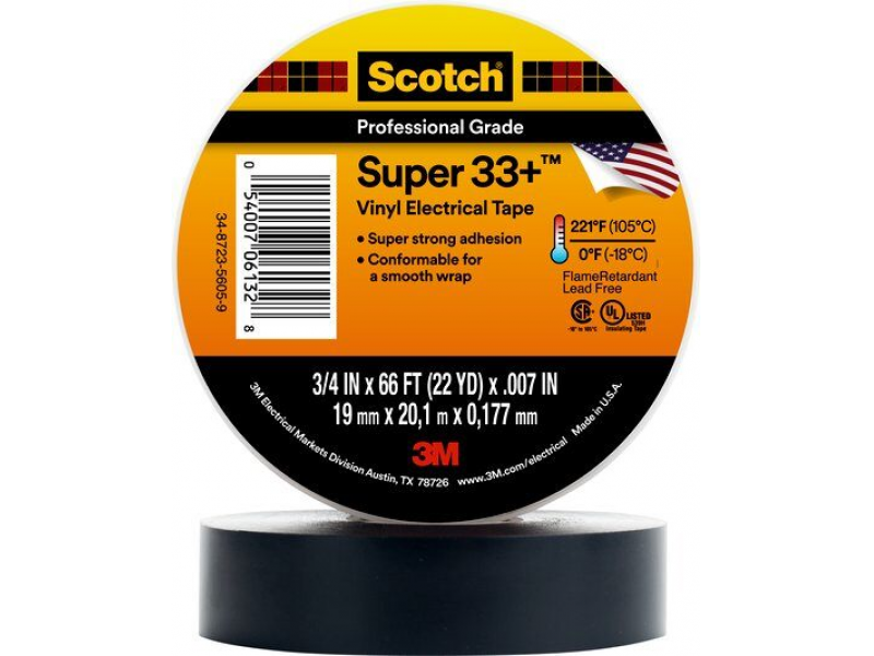 - Băng dính điện Scotch Super 33+ với độ dính và đàn hồi rất tốt, ép chặt mối nối, chống hở mép khi quấn đúng quy cách.