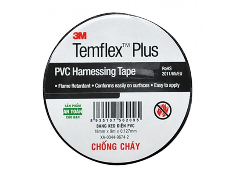 - Băng keo điện 3M Temflex Plus là loại băng keo điện chống cháy lan, có khả năng cách điện 600V