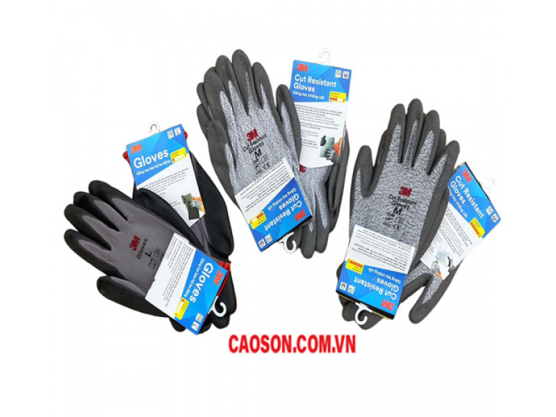 - Găng tay chống cắt 3M cấp độ 5 với chất liệu HPPE( high performance polyethylene) sợi đất sét, găng tay sợi HPPE phủ PU mạnh hơn 15 lần so với sợi thép và bền hơn 40 lần so với sợi polyester và sợi nhân tạo.