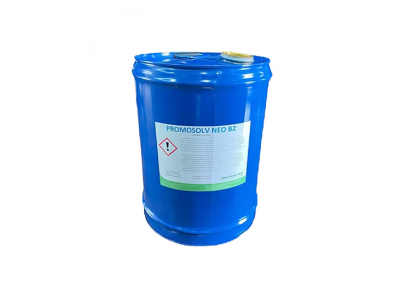 - Hóa chất tẩy rửa Inventec Promosolv neo B2 chuyên dùng để loại bỏ hầu hết các loại dầu mỡ, ngoại trừ chất bôi trơn gốc nước. Ngoài ra, sản phẩm còn thích hợp để loại bỏ sáp và các hạt. Tùy thuộc vào bản chất của vật liệu polyme hóa, một số loại vecni, chất kết dính, mực và sơn cũng có thể được loại bỏ.