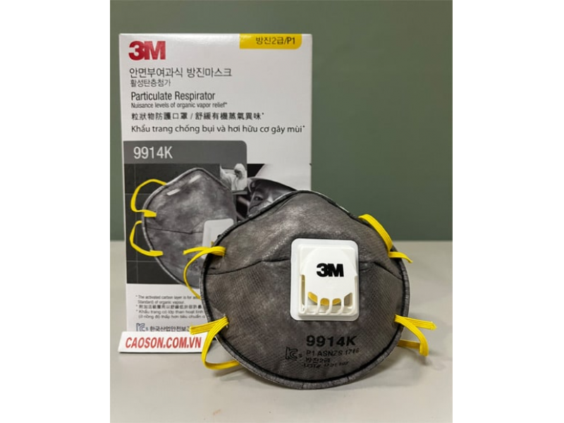- Khẩu trang chống bụi và hơi hữu cơ gây mùi 3M 9914K bảo vệ người dùng trước các mối nguy về bụi, bụi mịn, bụi gốc dầu, sol khí gốc nước, khẩu trang giúp làm giảm mùi khó chịu từ hơi hữu cơ.