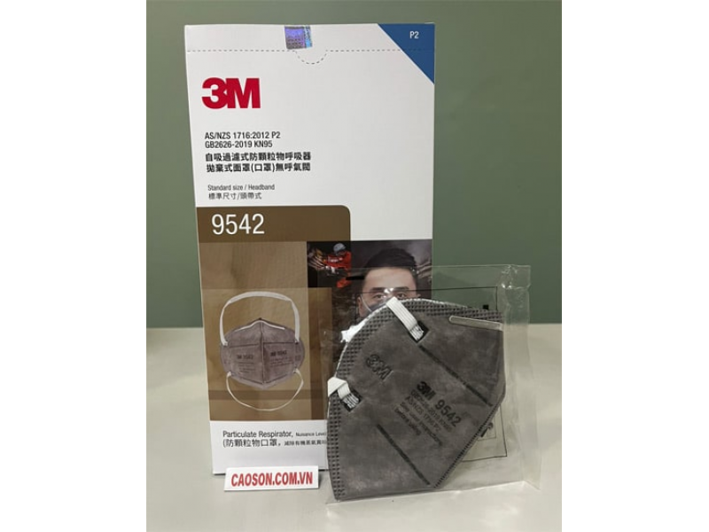 - Khẩu trang 3M 9542 đạt tiêu chuẩn Úc/ New Zealand phân cấp lọc bụi P2.