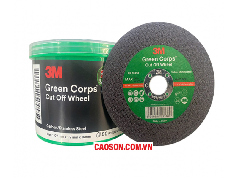 - Đá cắt 3M Green Corps có cấu trúc hạt mài mòn gốm, là loại đĩa cắt nhanh, bền, có tốc độ cắt cao và tuổi thọ cao.