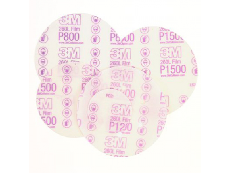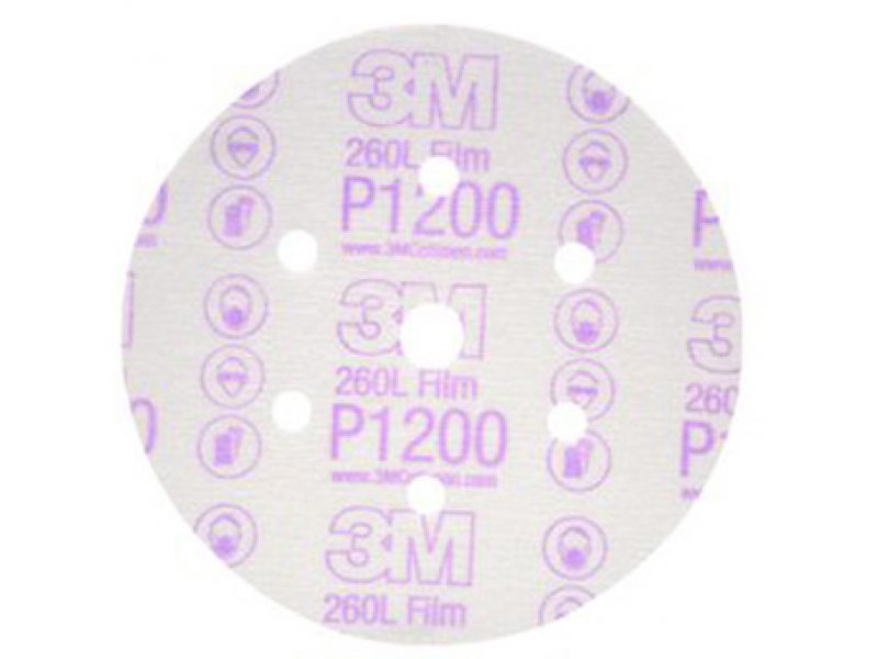- Nhám đĩa Hookit 3M 260L, độ hạt P1200 trên nền film cho độ hoàn thiện cao khi ứng dụng mài cho ô tô. Loại nhám đĩa không bám bụi với cấu trúc gai dính vào đế máy mài