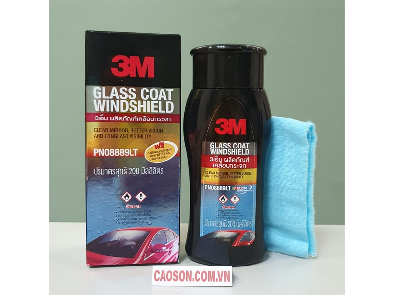 - Dung dịch phủ kính chống bám nước 3M 08889LT sẽ tạo ra một lớp màng mỏng trên kính chắn gió của ô tô. Sản phẩm này có vai trò như một lớp phủ chống thấm nước đặc biệt giúp tăng khả năng quan sát trong mưa và giảm vết bẩn trên kính.
