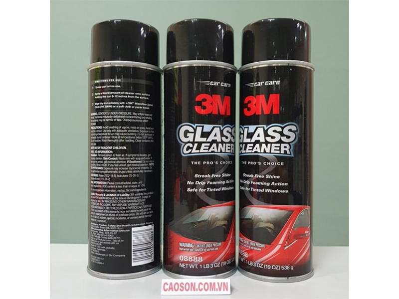 - Chai xịt rửa kính xe 3M 08888 có tác dụng tẩy rửa vết bẩn, vết ố, dầu mỡ trên kính xe ô tô. Mặt kính chắn gió và cửa sổ xe hơi được khôi phục lại độ sạch sáng và trong suốt.